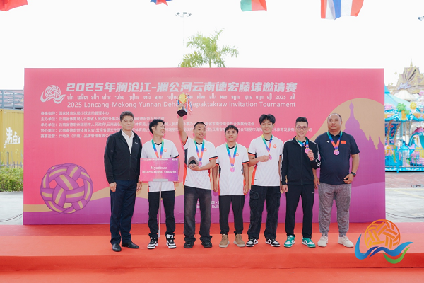 经过数日紧张而友好的激烈角逐,2025年澜沧江-湄公河云南德宏藤球邀请赛于近日在云南省德宏州瑞丽市瑞丽古城圆满落下帷幕。本届赛事吸引了来自中国、缅甸、老挝等澜湄流域国家的留学生组成多支高校代表队及青少年队伍,超过130名运动员以球会友,共同演绎了“澜湄一家亲”的动人篇章。